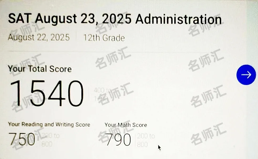 备考SAT的过程中,我很幸运地遇到了名师汇的各位老师。通过这段时间的一对一学习,我的英语能力和应试技巧有了明显提升,在8月考试如愿取得了1540分的满意成绩。