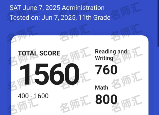 最后我想说,SAT这门考试考查的就是大家的努力和细心程度。我算不上是非常有天赋的学生,刚来名师汇时成绩一度垫底,基础班结课模考和提高班第一次模考甚至没有达到1400分,提高班结课模考也只有1410分。