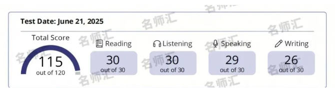 2024年秋天,我报名了名师汇的托福学霸班,经过这段时间的系统学习,在 2025年1月的考试中取得了109分的成绩。接下来的大半个学期,我再次暂停了托福的集中备考,但依托实验国际部日常的英语课程和SAT班课的学习,英语能力在潜移默化中得到了提升。直到今年6月的托福考试前,我才重新投入到托福备考中。