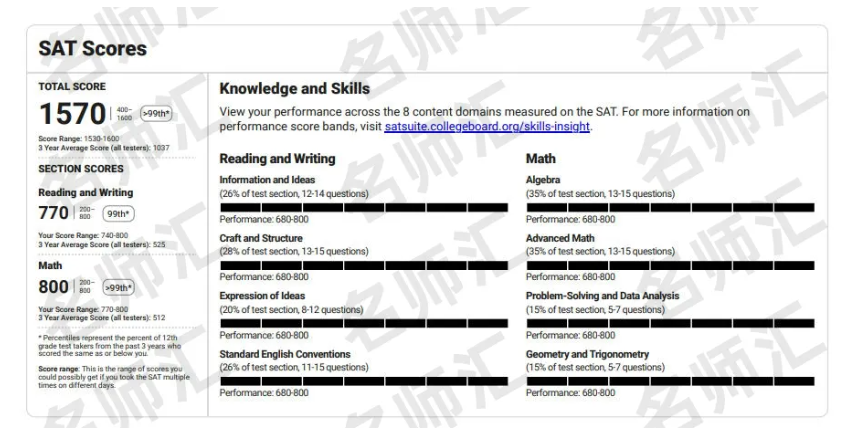 数学张老师真的是名师汇的“大家长”,教课认真负责,了解每个学生的学习情况,而且给他发消息问问题总能秒回并把问题讲解得很详细。虽然SAT数学与其他科相比并不是很难,但考满分还是很不容易的。我这次数学能发挥稳定考满分,很大程度得益于张老师上课讲的快速解题妙招和课下的耐心指导。