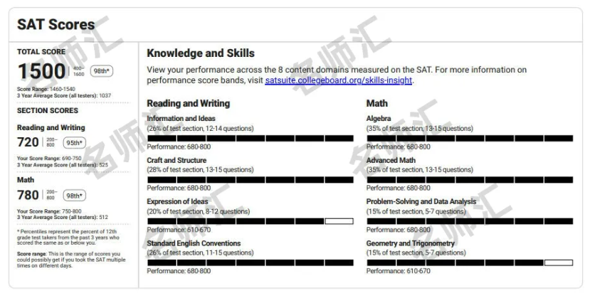 但事实并非如此,记得第一次SAT模考时,大段的复杂学术文章和文法、逻辑题型就令我有些慌张,最后只拿到了1340分,阅读文法610分。周围的很多同学在十一年级前就考出了满意分数,而我当时还没有开始备考SAT,未免感觉有些落后。这时我找到名师汇,进行了SAT模考和学习规划,报名了一对一课程。由于我在国外上学,线下课程和集训不大方便,只能在线上和老师进行沟通和学习。名师汇的老师根据模考成绩,专门针对我的弱项进行规划和补习。
